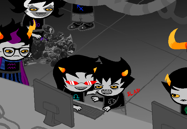 It’s pretty amusing how Karkat says it makes no sense for him to troll John backwards but ends up doing so anyway. When he finally decides to start flaming John, he says he’s out of time, and says “see you soon”, which is yet another one of those mystery arc hints.