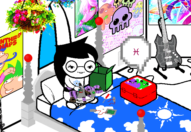 Feferi thinks squidmonster sprites are funny. Did Gl’bgolybsprite actually have a sense of humor? Or is it Feferi’s view of the world acting up again? I bet she really was just kind of a typical cryptic space tentacle monster.
