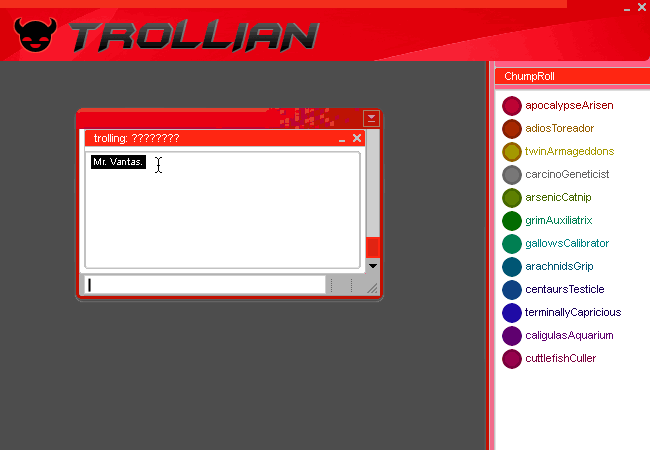 KARKAT: PASSWORD PASSWORD PASSWORD PASSWORD PASSWORD PASSWORD. PASSWORD YOU NUBBY GRUMPY SACK OF UGLY FUCK. I WANT A PASSWORD RIGHT NOW OR I WILL DIRECT MY COLD LASER HATESTARE THROUGH YOUR BULGE FROM BEHIND MY GOOFY ASS GOGGLY GIRL GLASSES FOR LAME SHITTY SISSIES.