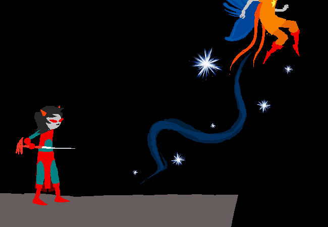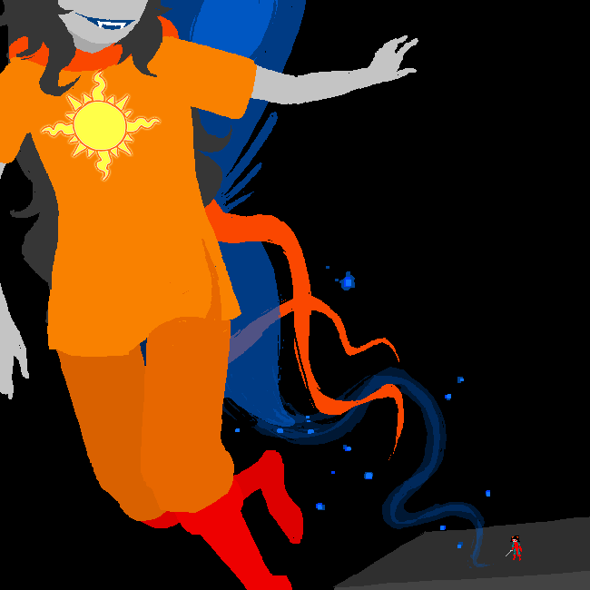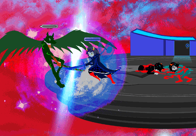 The Slayer was, for the moment, unmotivated by the Thief’s motion for a compelling duel. This side of The Scratch, he opted for a more ruthless and calculating policy of extermination. On his arrival, not about to repeat the mistakes leading to his banishment, he quickly obliterated all twelve planets, followed by Prospit and Derse, to weed out those who might outsmart him in the same manner.