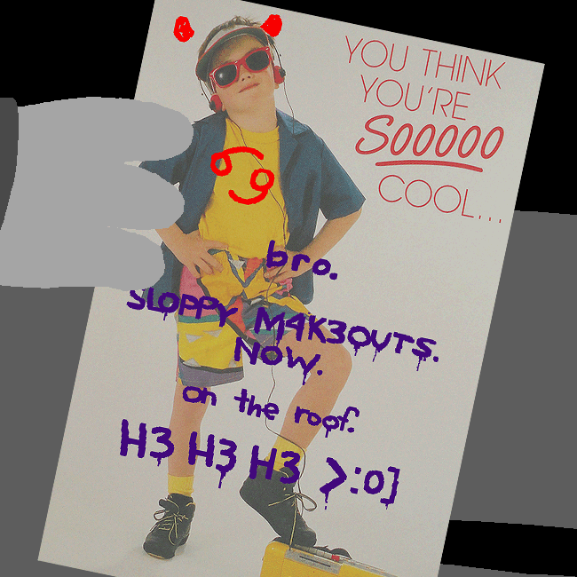 CG: WHICH IS ADDRESSING THE MATTER OF WHAT INCOMPREHENSIBLY PUTRID GARBAGE YOU AND YOUR FRIENDS ARE AND HOW MUCH I HATE YOU.