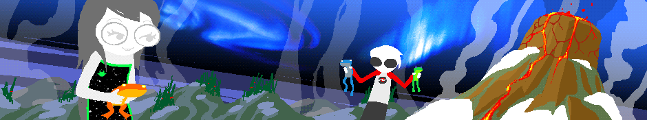 In the banner, mind visions transition us to Snowman, with stars in the background as well, to symbolize her tie to the life of the trolls’ universe. This is another parallel between the banner scene and what happened earlier: one turned out to be envisioned by Terezi, the other by her exile. This also makes for a kid/exile parallel, and shows us that Snowman has things in common with both of the players she commanded (the other is Vriska, with whom she shares an 8 theme).