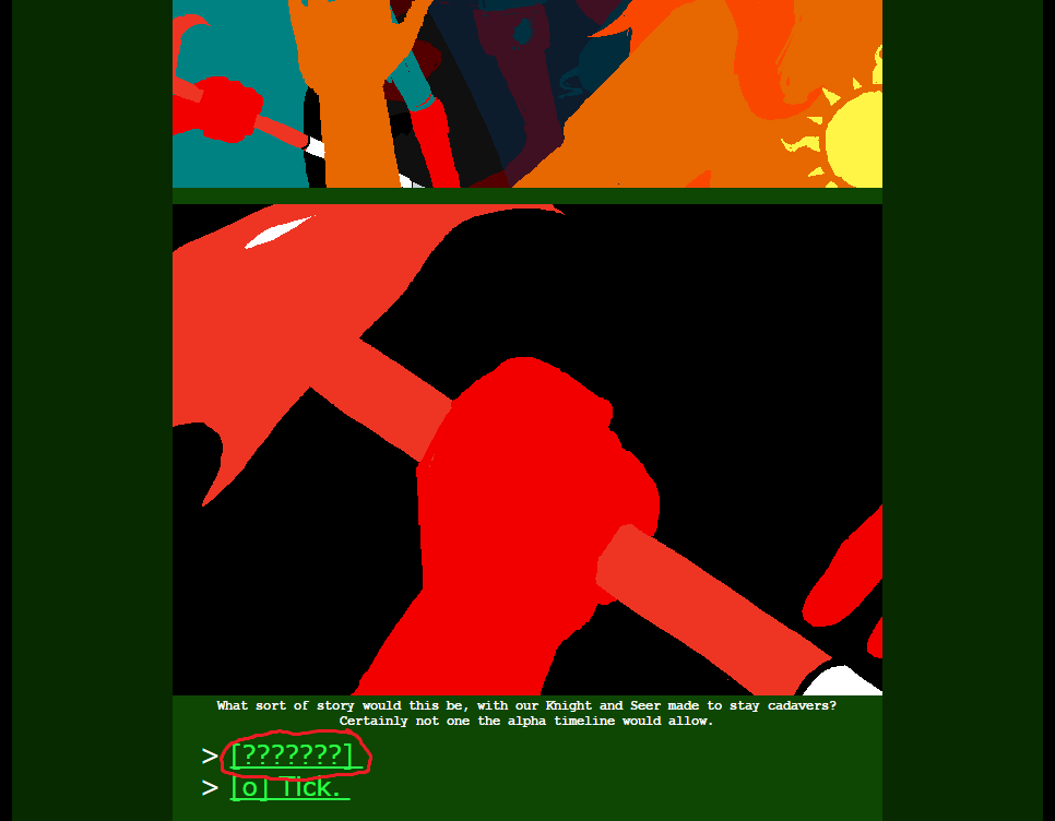 What sort of story would this be, with our Knight and Seer made to stay cadavers? Certainly not one the alpha timeline would allow.
