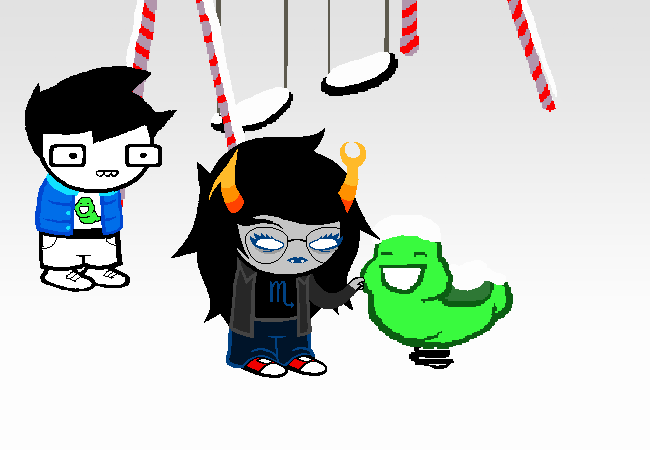 This is another one of those bits of foreshadowing of the alpha kids. It’s still a while before we learn that they are going to exist. As is later revealed, his new owner was Roxy, who if I remember right got him after fooling around with technology. This means that of the four alpha kids, two of them (the other is Jake) are hinted at before Act 6. Roxy was in fact hinted at all the way back in Act 3 when we saw that someone made Jaspers disappear and later sent him back dead. I believe that was also around the time Hussie came up with the alpha kids, though I don’t remember where he said that.