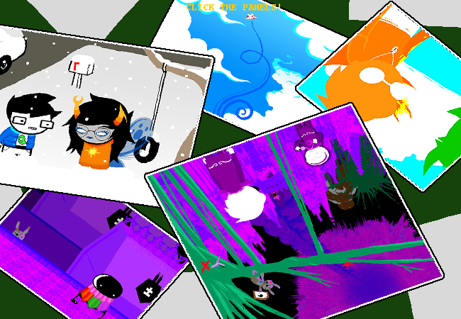 Also, the art in the picture is a bit of an optical illusion that plays with weirdnesses that can arise from isometric projection, somehow connecting Vriska’s floor to John’s wall when that shouldn’t be possible.