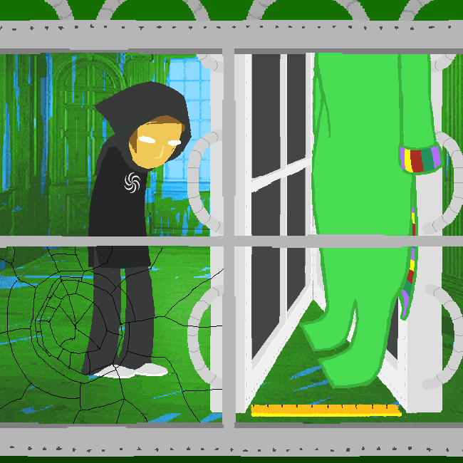 Turns out that the banging is not on the door at all; rather, someone is banging a chair on something called the fifth wall, something we can only assume is even more pretentious and self-indulgent than the fourth wall. In Hussie’s own words, the fifth wall is “a partition separating two omniscient narrators, which when broken, allows them to mess with each other”.