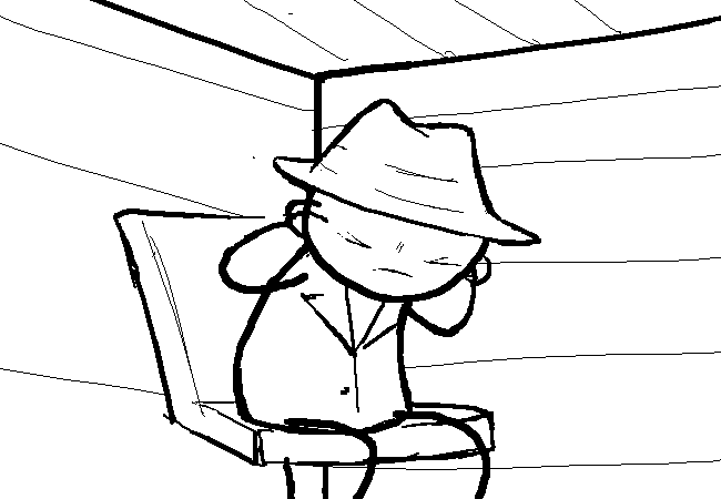 Problem Sleuth, like all three other MS Paint Adventures, starts off simple enough: by introducing the main character in a default starting situation. Jailbreak and Bard Quest both put the main character in a definite predicament of sorts, but Problem Sleuth and Homestuck simply introduce the main character in the most everyday setting possible. While Homestuck soon tells us that John, the protagonist, is getting a video game called Sburb for his birthday, thus setting up a premise*, Problem Sleuth does not give us any premise at all in its opening pages, instead revealing it through Problem Sleuth (the character) realizing through command-based exploration that he is trapped in his office.