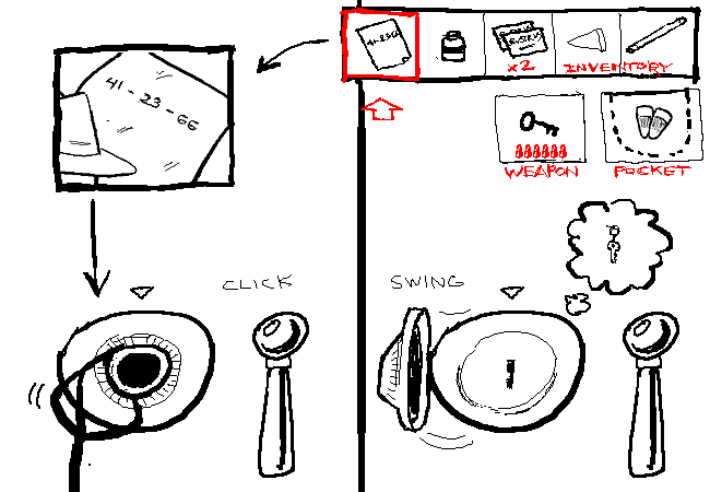 In response to Problem Sleuth being commanded to drink his whiskey, the narration says, How do you expect to drink from the FLASK OF WHISKEY when it is not in your jacket pocket??? Presumably this is a reference to the annoying restricted way inventory systems in video games work.