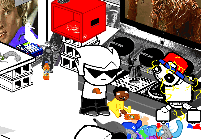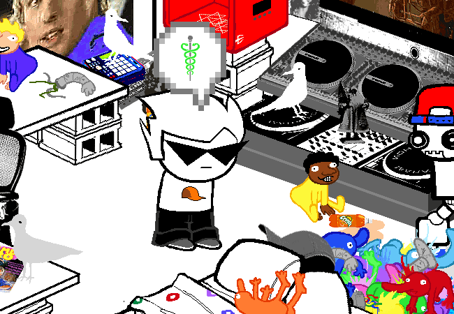 Squarewave then distracts waking Dirk’s attention by initiating a rap-off, pretty much making that finally happen. Dirk says he’s busy but Squarewave says that’s bullshit and all he’s been doing is look around his room, which is exactly my point.