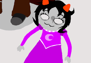 Starting with the scene shown above, we get to see our first glimpses of day-to-day life on the meteor, as background events in the form of Dave exploring dream bubbles and meeting the dead trolls, who from here on out serve as mostly background characters, the main exception being Vriska. We see Equius surrounded by two Aradiabots, which sort of serves to let us know that he’s happy enough in the dream bubble afterlife, which is to say perpetually aroused. Even though his thing for robotic Aradia is creepy as hell, if that’s what makes him happy then what do I care, especially since it was already established a long time ago that he’s deranged.