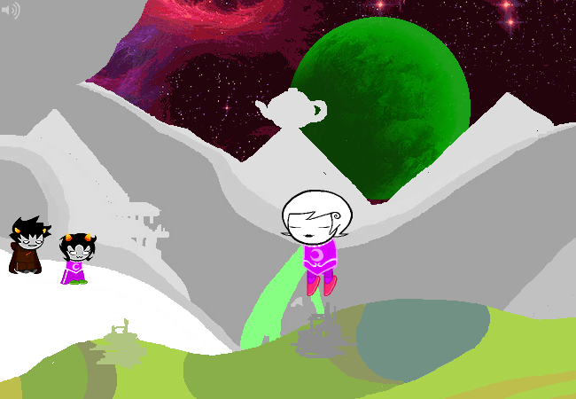 I think it’s pretty obvious that the dream montage in this flash is meant largely as Hussie having some fun making cool-looking dream bubble scenes. It’s largely made out of the trolls’ planets; I think readers might be meant to see how many different scenes they can catch. I’ll try to list stuff as I go along: