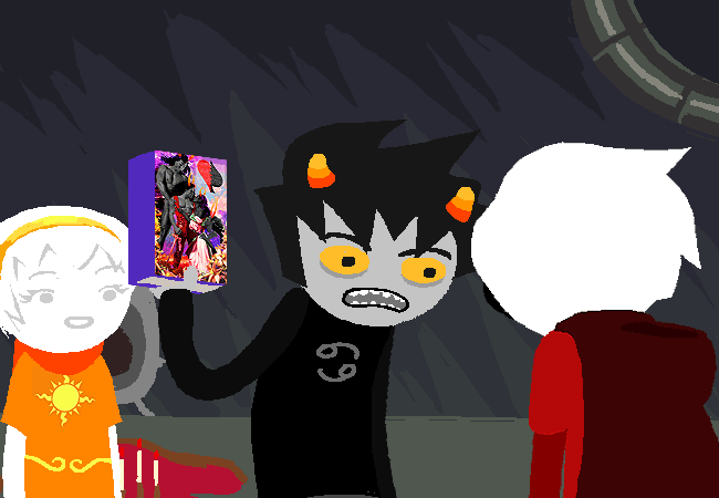 Don’t ask me where Karkat got all his ideas on the whole relationship situation, like him and Terezi being supposedly about to vacillate and all that. Maybe he consulted one of those romance novels as a last resort and got those fake ideas from there?