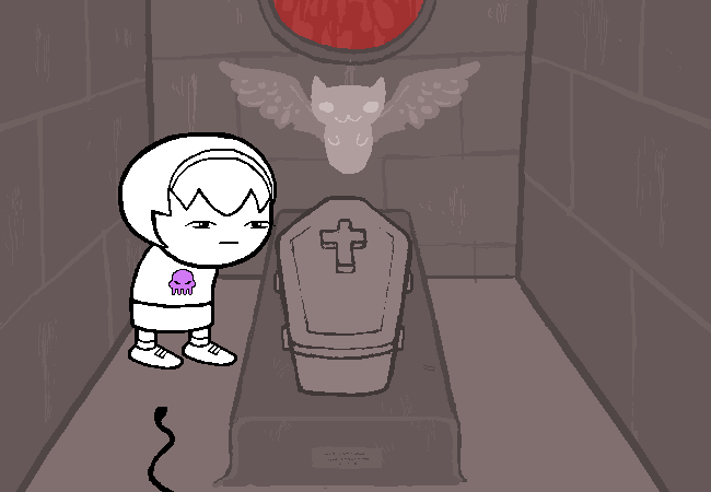 And this parallel is made clearer when Rose knocks her cat’s tomb out of the way. It’s reminiscent of John knocking down his grandmother’s ashes. The pattern of dead family members that get prototyped is one of those patterns that only occurs with John and Rose. That pattern’s lack of full execution is addressed in-comic when Jade says that Dave is too cool to have any dead family members. It makes sense that pattern is toyed with so much because Dave’s and Jade’s sprites both wonderfully subvert expectations.