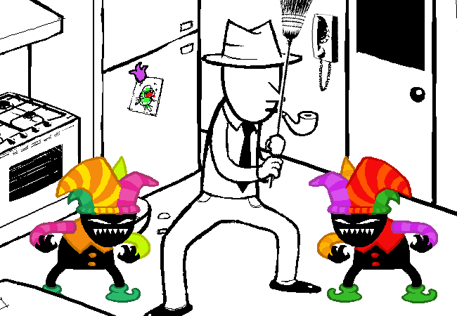 John strifes with an imp over the course of three interactive flashes. The first is a simple reenactment of the iconic “don’t move or the bunny gets it” scene from Con Air. The second is a bit more complex, with a short walkaround and battle system where John hits the imp a few times until he gets hurt. I have to say that although walkarounds in the comic’s usual sprite mode style look super cool, they aren’t all that fun to go through; switching to 16-bit art and talksprites was absolutely worth the trade.
