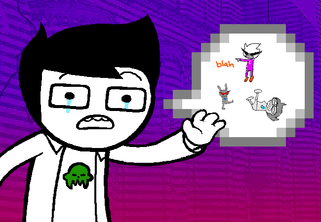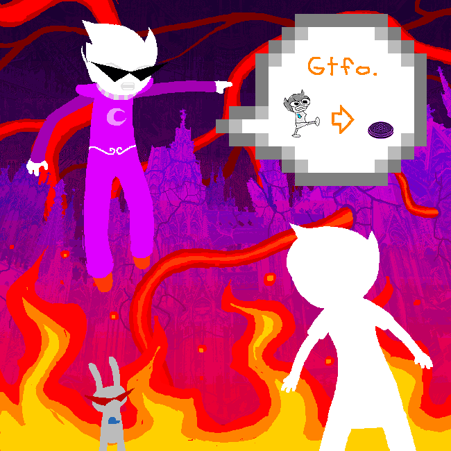 Caliborn represents the most galaxy brained* Homestuck fans. They love the comic so much that they try to pretend they hate it! He thinks the girl characters are attractive and is physically incapable of hiding that.