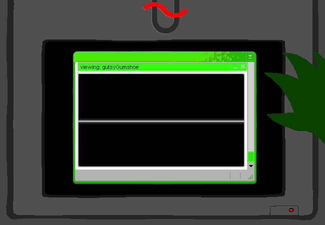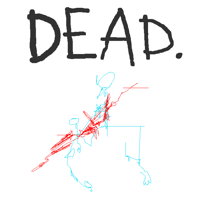 You know the pattern now. Dirk’s screen shuts down, he is knocked out, and Caliborn draws his interpretation this scene. Note that he extrapolates Roxy’s death from Jane’s death and Dirk’s knocking out from Jake’s knocking out. Caliborn’s speculation seems to be derived from his misogynistic distinction between male and female characters and it works in his favor; his drawings are let’s say interesting, but accurate, renditions of what happened to Roxy and Dirk.