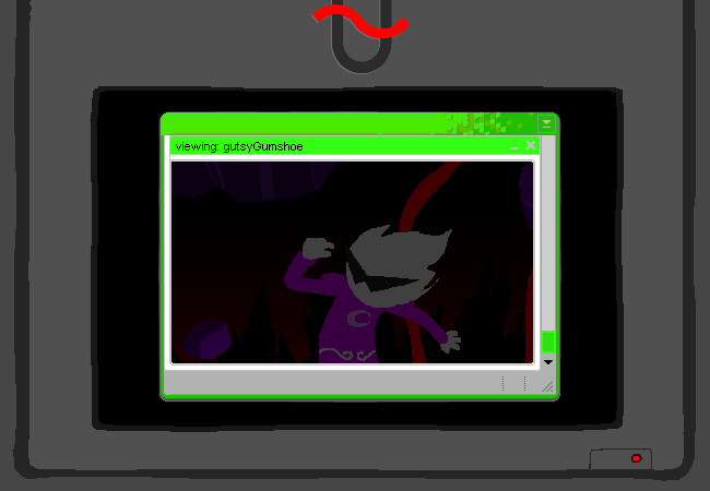 This genuinely sad death is interrupted with a funny moment: Caliborn bangs on the screen, complaining about the viewport’s sudden blackout. We can tell he’s super invested in the kids’ story, just in a twisted-up way, because he is happy when the story starts actually being good and upset when the good part suddenly is cut short.