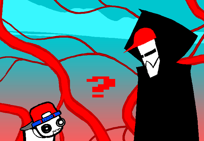 If Caliborn was a better artist, his drawing would clearly resemble Lord English. And that would be no good, spoiling twists like that! You have to feed readers breadcrumbs instead. If you spoil too much, they will urinate from their eyes.
