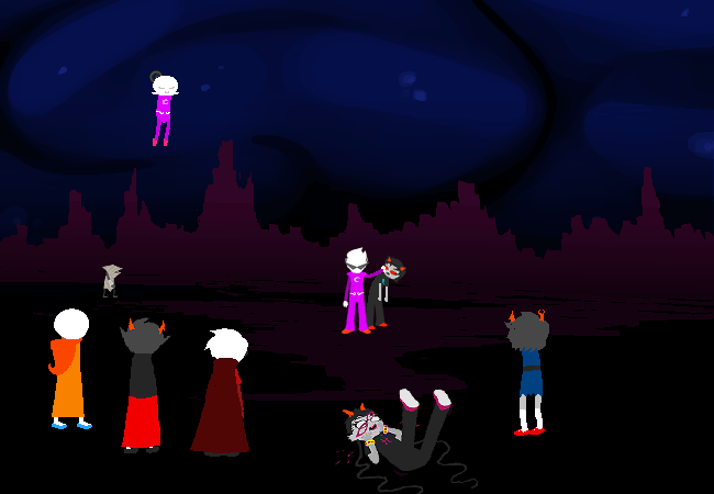 With the selection screen finished, the next order of business is the alpha kids’ lights on Jane’s planet. All except Jake’s (which was already turned off to correspond with his dream self’s death) shut off, but Dirk’s is still faintly glowing.