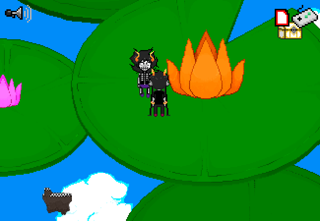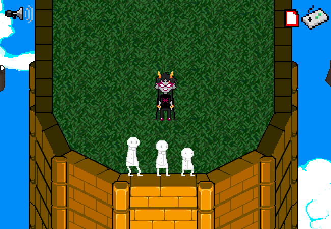 When Meenah asks about Karkat, Cronus says he made a complicated puzzle to seclude himself from the Beforan trolls haunting his memories, which sets up the goal of this walkaround: you have to find chests containing gems shaped like the quadrant symbols to open Karkat’s door.