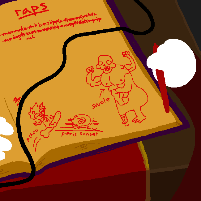 I fucking love this panel so much, everything about it is perfect. The scribbled out rap notes. Karkat riding a giant penis into the sunset. His usual screaming expression while riding the penis. Lord English drawn with the same body form as Sweet Bro and Hella Jeff.