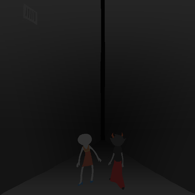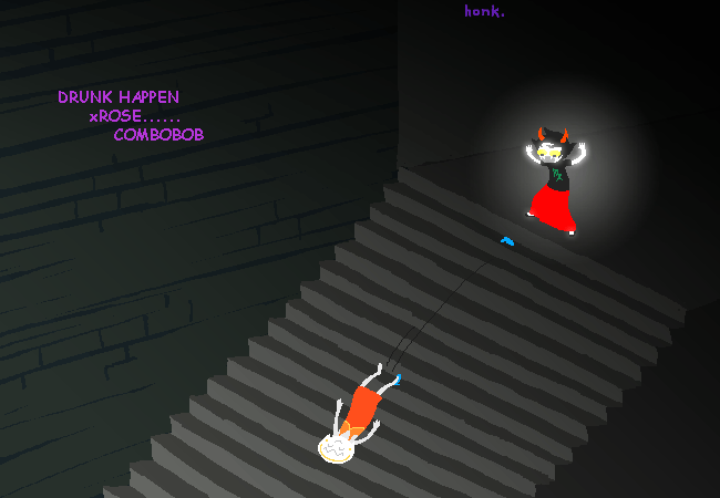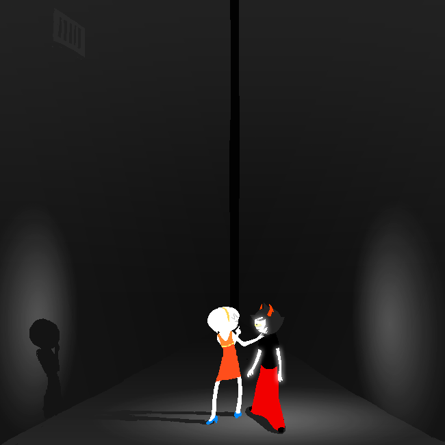 And then the date begins. Rose and Kanaya walk down a dark hallway, Gamzee honking in the background. I said at one point in this blog that I like to think this whole scene is a parody of lesbian fanfictions, which was really just something I read somewhere and thought “oh hey that makes sense”.