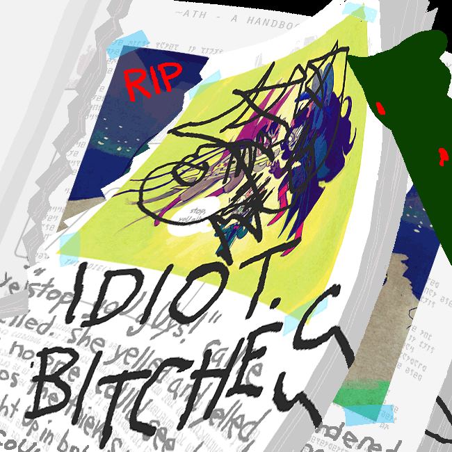 I love how the “S” in “BITCHES” written partly over the side of the book.