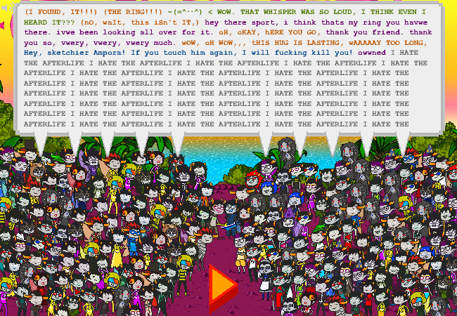 After a Karkat ghost is grouchy as ever running through this crowd, the scene gets bigger still: