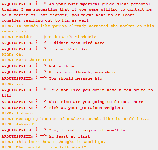 Also, just like last time, I’m quoting all of Dirk’s conversation with Arquiusprite in images instead of text.