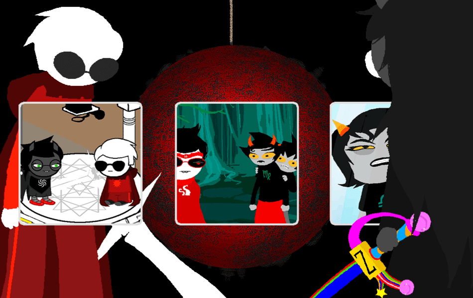Next up, we have what would be the coolest-looking selection screen yet if it weren’t for glitches that block out all options except the leftmost one with Dave and Jade. Hussie is having a lot of fun toying with the concept of selection screens and will continue to do so until near the very end of his comic.