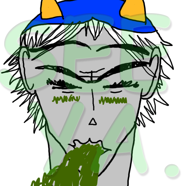 On his profile, Caliborn’s favorite visual artist and favorite writer are both himself, which given his lack of exposure to other media makes perfect sense. Same goes for his favorite book being How to Draw Manga; it is without a doubt the only book Caliborn has gotten something out of that isn’t Sburb lore or classpecting nonsense. I also like that his favorite game is “table stickball”; it shows that he now sees his leprechauns as friends, and gets a kick out of owning them in the completely 100% original game they made up based on the colors of their hats. Who knows, maybe he’s managed to defeat the fast and sneaky Itchy in this game?