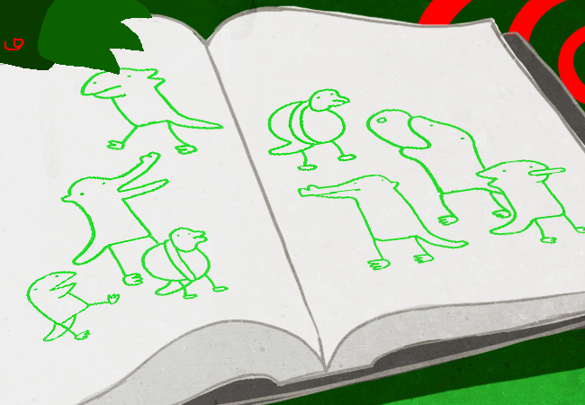 Jade and Calliope commence their storytelling session for real, wielding pens in their respective text colors. Jade tells the two stories about John as promised in their last scene.