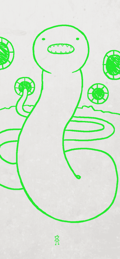 It’s rather fitting for Jade to take her turn drawing at this point, considering one of our first exposures to Typheus was that huge minion her grandpa kept in his basement. Jade’s drawing of Typheus is sure to evoke that old minion whose origin still isn’t well understood.