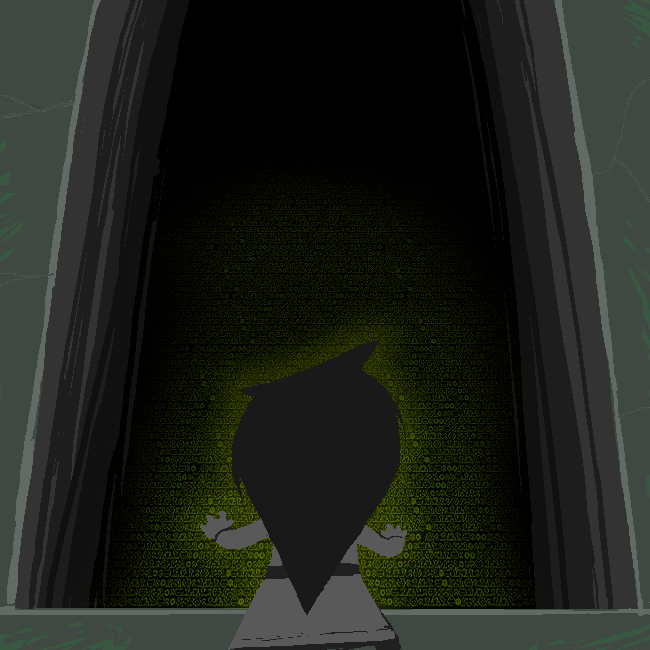 This four-way shot shows us why this flash is called [S] Enter and not [S] Rose: Enter. All four beta kids are entering something, each undergoing a step forward in their Sburb progression. John into his first gate, Rose into the Sburb session, Dave into the Sburb server, and Jade into having copies of Sburb in the first place (oh yeah, and into the frog temple).