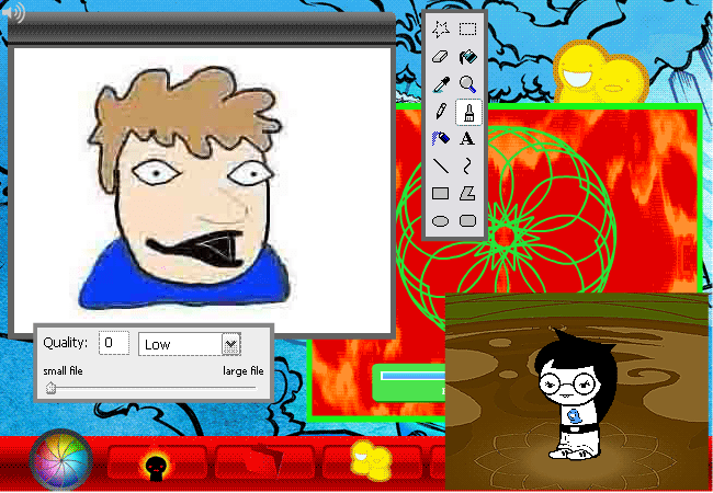 With Rose’s house rapidly approaching evisceration by meteors, it’s time for Dave to get her into the game. No time for dicking around, neither on Dave’s nor the author’s part—all the wacky Sburb device placement stuff is condensed into this flash.