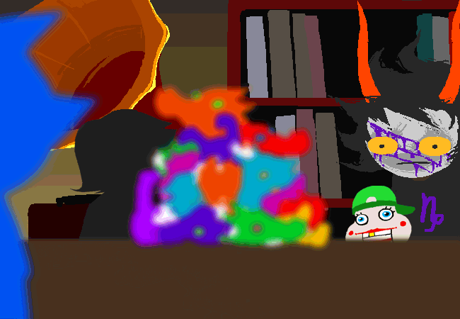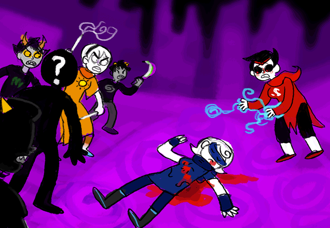 Also, it’s pretty cool that John figured out that the framing was Gamzee’s doing. The only strict reference he has is the trail of purple blood, but he probably deduced it not through the blood but his general knowledge of Gamzee’s personality.