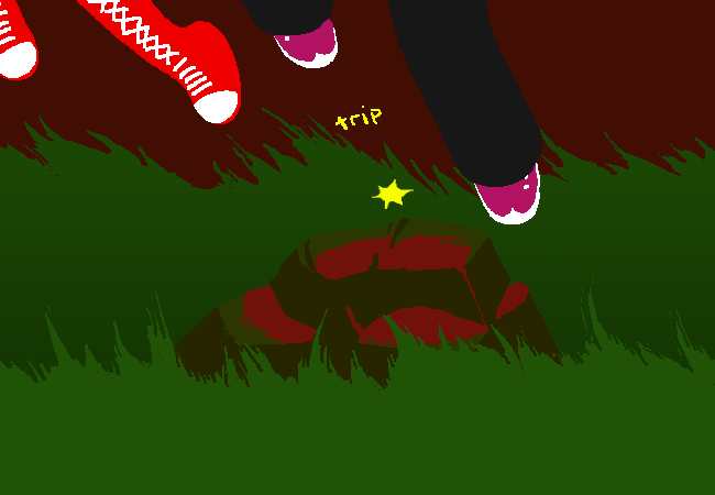 OK, I guess laughter isn’t exactly the only dialogue we’re hearing from them. Vriska’s reaction to tripping on a rock is much more extreme than Meenah’s, and it comes off not like a villain having her plans trampled upon, just an enthusiastic girl who happened to trip on a rock. Meenah is hardly deterred at all from the rock, which is classic Meenah.