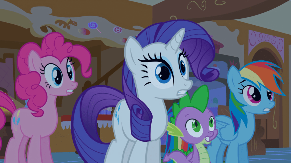 Even though Pinkie Pie saved Ponyville from complete obliteration, the town still has a lot of rebuilding to do, which will all happen offscreen, don’t worry. Most episodes end on less weirdly one-off notes like this; the show generally strays from having entire buildings destroyed then inexplicably rebuilt in the very next episode due to its strong focus on continuity. Again, I guess that’s season 1 for you.