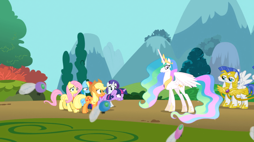 Celestia arrives in Ponyville, only to reveal that her visit has been pushed back to another time because of an infestation of dangerous creatures in Fillydelphia, giving the ending of this episode a weird “here we go again” sort of feel that you don’t normally get in this show.