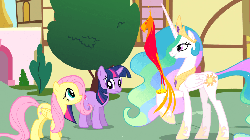 Here, Fluttershy returns the favor of Twilight Sparkle making her friends seem less crazy than they really are. Even though this episode is about asking for permission, this bit of dialogue demonstrates a subtle moral about returning favors, which several episodes focus on. Fluttershy narrates the moral about asking for permission and realizes that she could have just asked Celestia and avoided all this trouble; Celestia confirms that there’s no need for a letter this week. She’s a lot more lenient than Twilight Sparkle thinks when it comes to following rules.