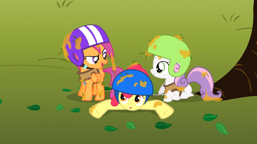 Scootaloo: UGH! These namby-pamby stories aren’t getting us any closer to our cutie marks. They’re all about “finding who you really are” and boring stuff like that!
