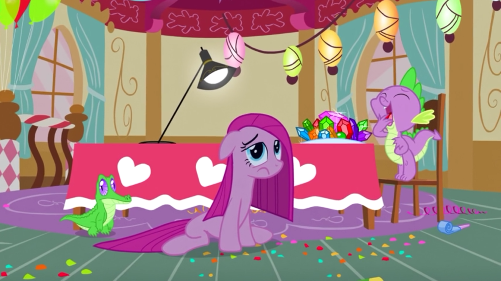 Premise: The day after a birthday celebration for her pet alligator Gummy, Pinkie Pie notices something fishy about her friends and suspects that they don’t like her parties anymore. She doesn’t take this well, to say the least.