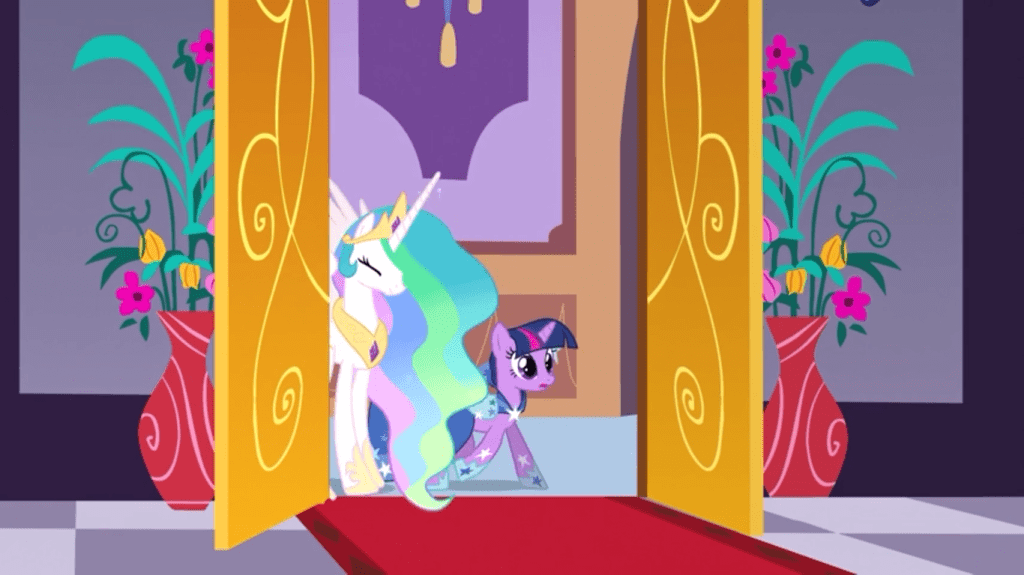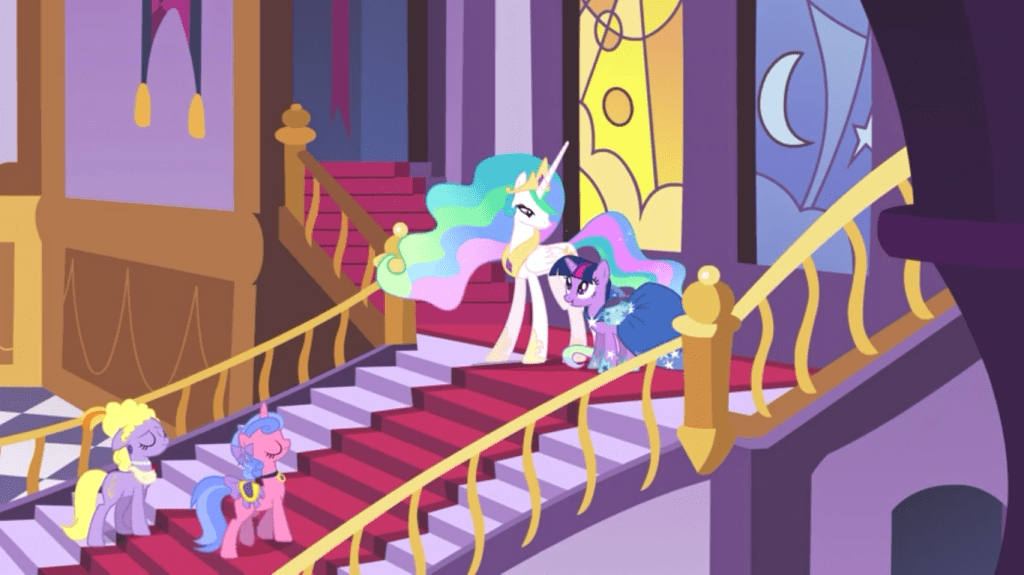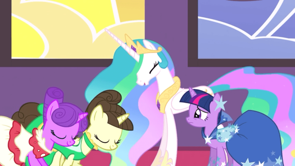 - As for Celestia’s side of things, the episode’s ending makes it clear why she wanted Twilight Sparkle by her side. She wanted a friend to keep her company through her tedious annual routine of greeting the guests at the gala, which she probably does because she finds that the least annoying thing to do at that gaudy event.