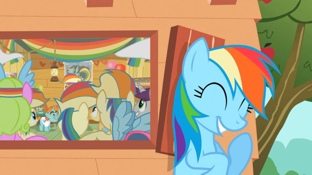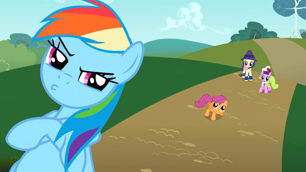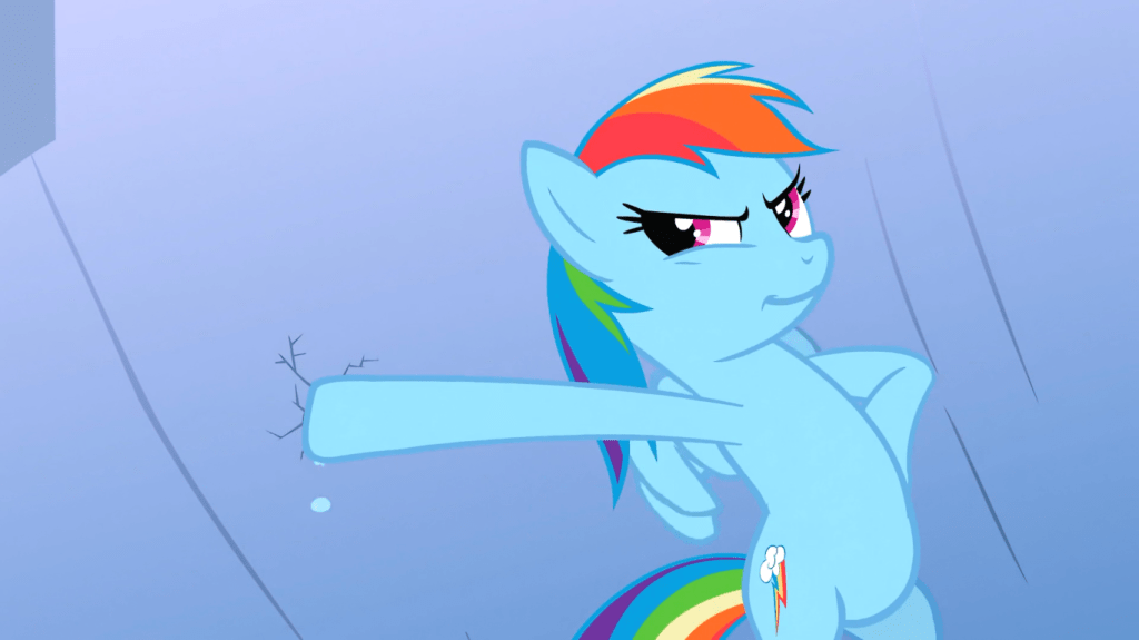 I don’t know about you, but for me, “Rainbow Dash” is basically synonymous with “second-hand embarrassment”. When I watch almost any episode focusing on her, I get some form of second-hand embarrassment. Sometimes, the embarrassment feels believable or realistic, or reminds me of an embarrassing situation I got myself into. But other times, it feels like the episode is too mean-spirited towards Rainbow Dash or exaggerates her character too much. Now don’t get me wrong, Rainbow Dash is a great character. All the Mane 6 are great characters! It’s just that Rainbow Dash is the right degree of relatable that I am easily embarrassed at the things she does, and yes, I know she’s a fictional horse, but do you think there’s a rule saying that you can’t be embarrassed by a fictional horse? If I’m being completely honest with myself, Rainbow Dash is at least as relatable to me as Twilight Sparkle is.