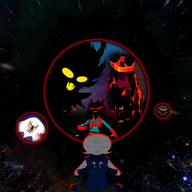 The visuals of this scene symbolize Roxy narrowing down the concept of the matriorb in a cool way: first the troll universe, then Alternia, then Alternian history with various old scenes featuring the Alternian ancestors…
