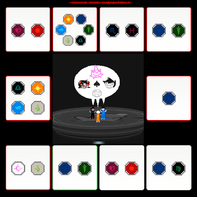 … and then jade bloods, with a teaser at the extended zodiac. If you don’t remember the extended zodiac, it’s basically an official Sburb aspect/dreaming planet personality quiz that expands upon the trolls’ zodiac signs and expands on the meanings of aspects (but not classes), and the quiz came out in November 2017. This image suggests the extended zodiac was planned back then, and those signs are put to good use here by symbolizing jade bloods beyond just the Maryams.