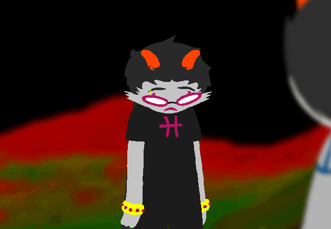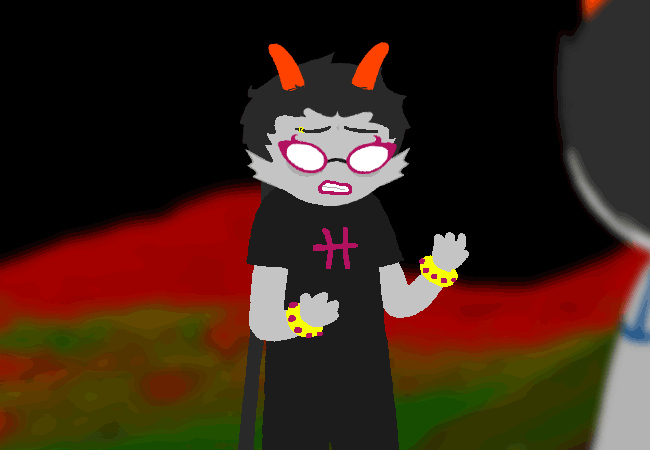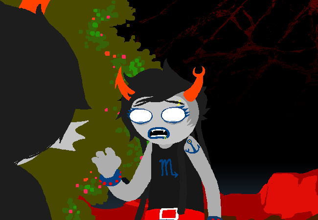OK, here’s a much more interesting passage. Kanaya refuses to admit she knocked out Karkat, which is humorous but also says something about her motherly instinct and dutiful agreement to Echidna’s deal. She knocked Karkat out to be 100% sure he will be alive and safe in time to enter Earth C and lead the troll race, and she probably doesn’t want to admit she did that because she doesn’t want to uphold her reputation as the meddlesome troll. Or maybe because it would make her sound like she doesn’t believe in Karkat when the truth is she very much does.