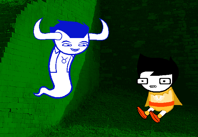 Jake’s portion of the select screen is a conversation with Tavrosprite where he pretty much just says a bunch of hogwash about how he’s done with having romantic relationships or even friends. I’m not really sure what the point of the conversation is, or why Jake doesn’t at least see John as a new friend? Maybe just to establish that Jake and Tavros are both ridiculously pathetic and wimpy right now, setting up the contrast against pre-retcon Tavros. Jake lays his old man speak thick in the conversation, which suggests to me that he’s in especially strong denial about his true feelings, as we’ve seen in many conversations with Jane. He also comes up with “Tavvy” as a nickname for Tavrosprite, which reminds me of Tavros Crocker in the epilogues—I always imagined that Tavrosprite was the inspiration for Jake to name his and Jane’s son. This then leads to a storm of far more ridiculous nicknames:
