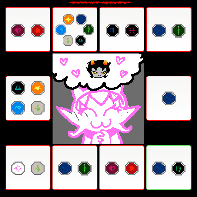 Time for the tenth and final section of the fake character select screen! But first, let’s go through some of the hover options on the select screen. First off, Dave and Dirk round 1 finally shows them talking instead of sitting silently, which is very refreshing. They’re facing each other instead of sitting side by side, trading stories of their respective bros. Both of them seem to have greatly lightened up, talking about the more humorous sides of each other’s adult selves.