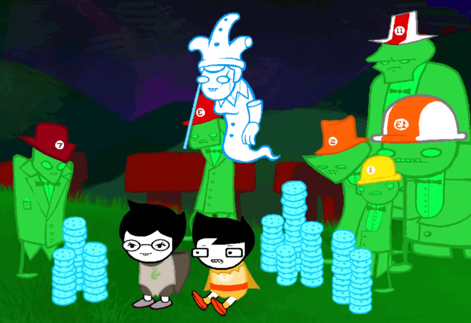 What do I think about this Shrek cameo, you may ask? It’s a silly little moment that raises a lot of fascinating implications about Eridan’s character, but only if you actually notice it which is quite unlikely. Not just the presence of Shrek, but how Eridan looks to be alive and smiling. This won’t be the last surprising media reference in Collide—we’ll see another a tiny bit later.